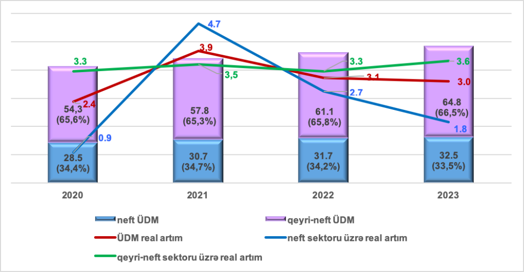 2020-2023-cü illərdə ÜDM, onun strukturu (mln. manatla), pay göstəriciləri (faizlə) və real artım templəri (faizlə) Mənbə: Azərbaycan Respublikasının İqtisadiyyat Nazirliyi Azərbaycan Respublikası Maliyyə Nazirliyinin bu gün yayımladığı büdcə layihələrinin təqdimatında ortamüddətli dövr üçün makroiqtisadi proqnozlar öz əksini tapmışdır.